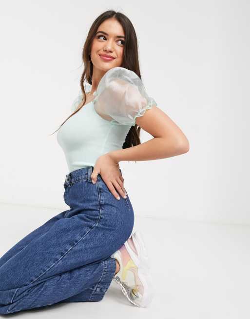 Pale Blue Textured Tie Back Puff Sleeve Top New Look Very well made.