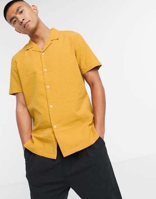 ASOS DESIGN regular fit revere collar seersucker shirt in pastel Very well made.