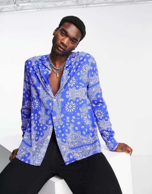 ASOS DESIGN relaxed revere shirt in bright blue paisley bandana print Very well made.