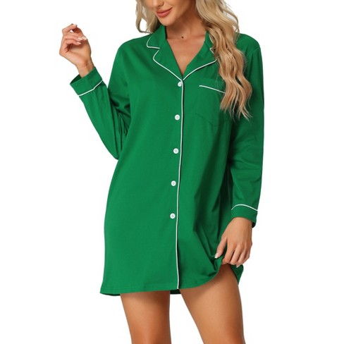 Buy Nighty Online Green Satin Button Down Lounge Shirt Dress By Very well made.