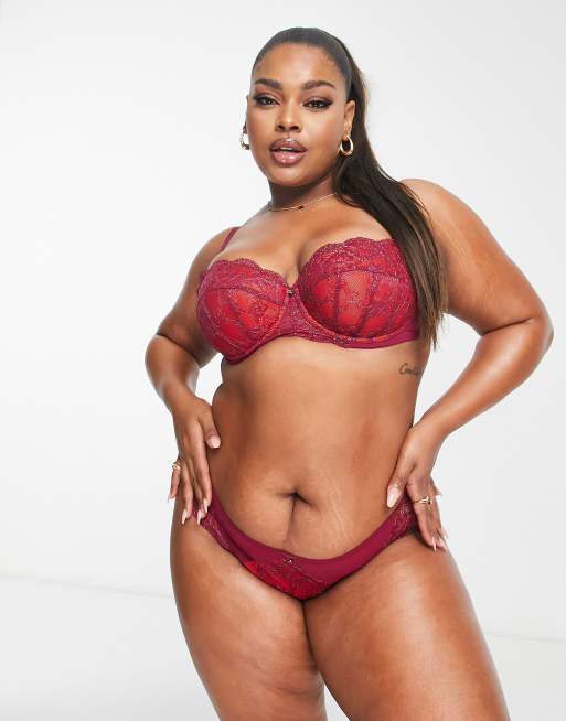 Ann Summers Curve Sexy Sexy Lace Planet brazilian brief with metallic thread detail in burgundy and red Very well made.