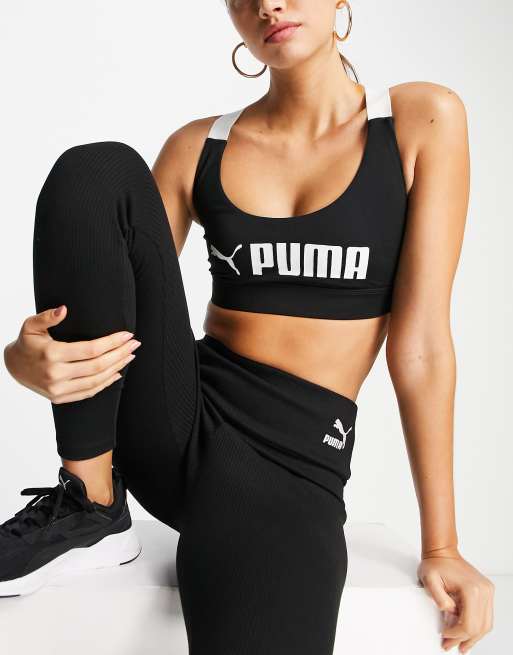 Puma Training Fit Sport bh met medium ondersteuning en kleurvlakken in zwart Very well made.
