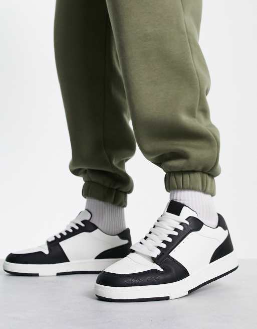 Pull Bear Lage sneakers met veters in wit en zwart Very well made.