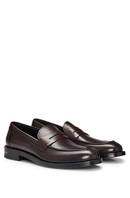BOSS Coventry Burnished leather Penny Loafers in Black for Men Lyst Very well made.