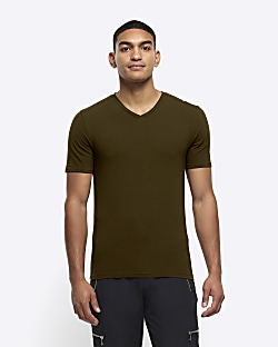 Khaki muscle fit V neck t shirt Very well made.