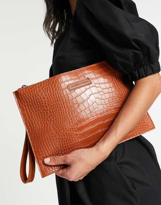 Claudia Canova mock croc oversized clutch bag in tan Very well made.