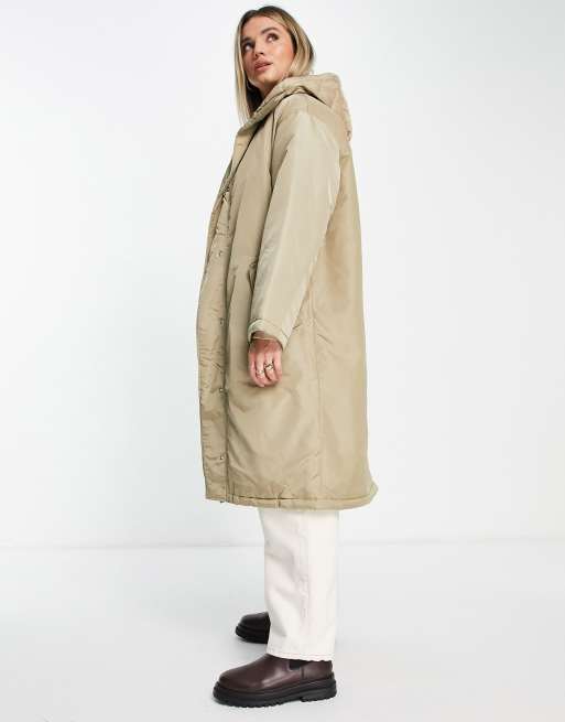 ASOS DESIGN quilted double layer parka coat in stone ASOS Very well made.
