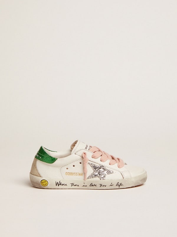 Super Star sneakers with silver glitter star and green glitter Very well made.