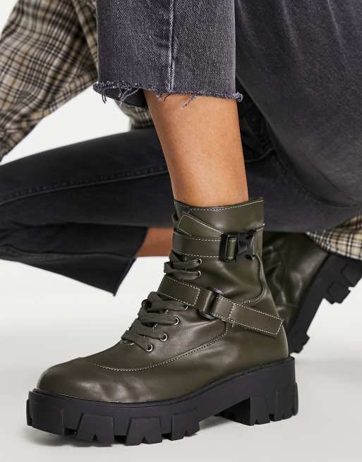 Leather Lace Up Buckle Flat Ankle Boots Very well made.